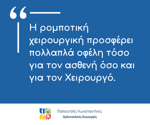 Η χρήση ρομποτικού συστήματος επιτρέπει τον ακριβή καθορισμό των οστικών τομών και την εξατομικευμένη τοποθέτηση των εμφυτευμάτων, διασφαλίζοντας βελτιωμένη κινητικότητα και ελαχιστοποιώντας τον πόνο.
